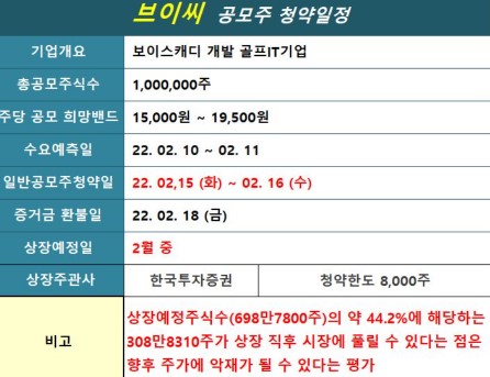 브이씨 청약일은 2022년 2월 15일~2월 16일 이며,