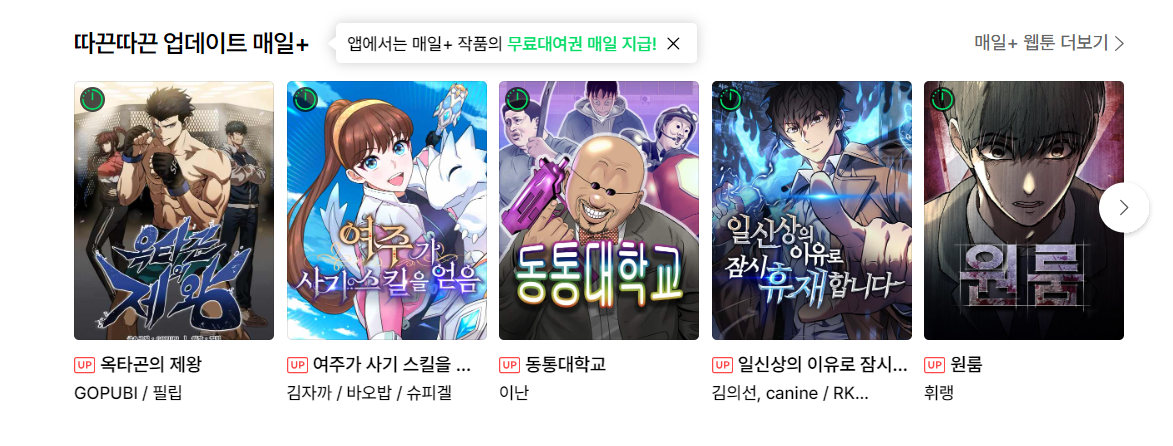 | 네이버 웹툰 | 다음웹툰 | 카카오페이지 |