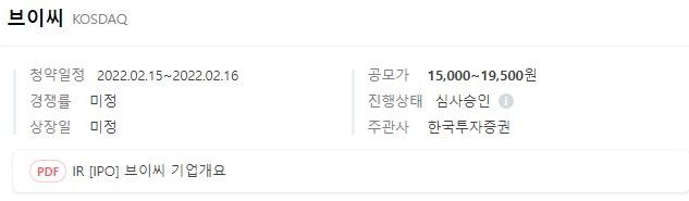 브이씨 청약일은 2022년 2월 15일~2월 16일 이며,