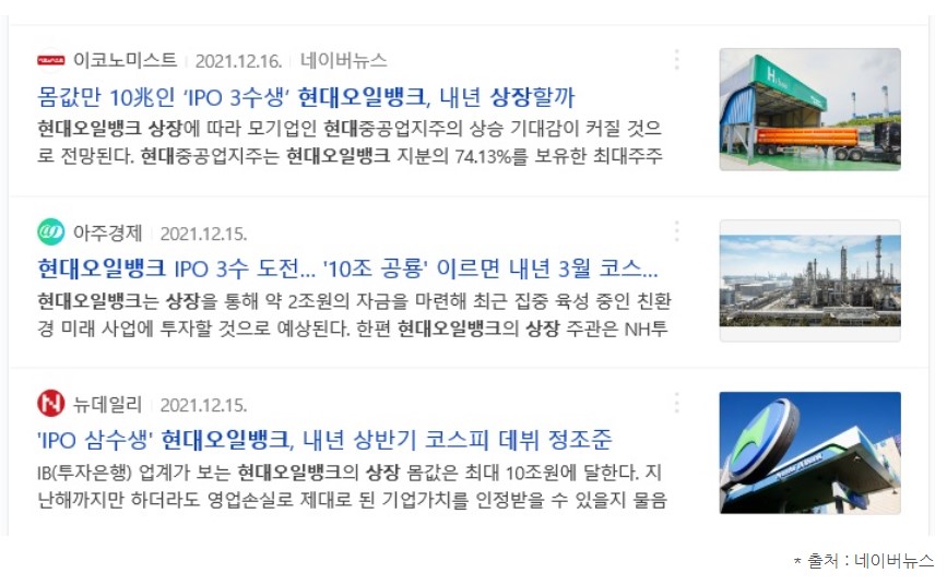 현대오일뱅크는 2번의 상장을 추진한바 있지만 모두 무산되었습니다.