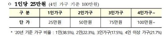 5차 재난지원금은 1인당 25만원 지급이 결정되었으며 가구당 지급이 아닌